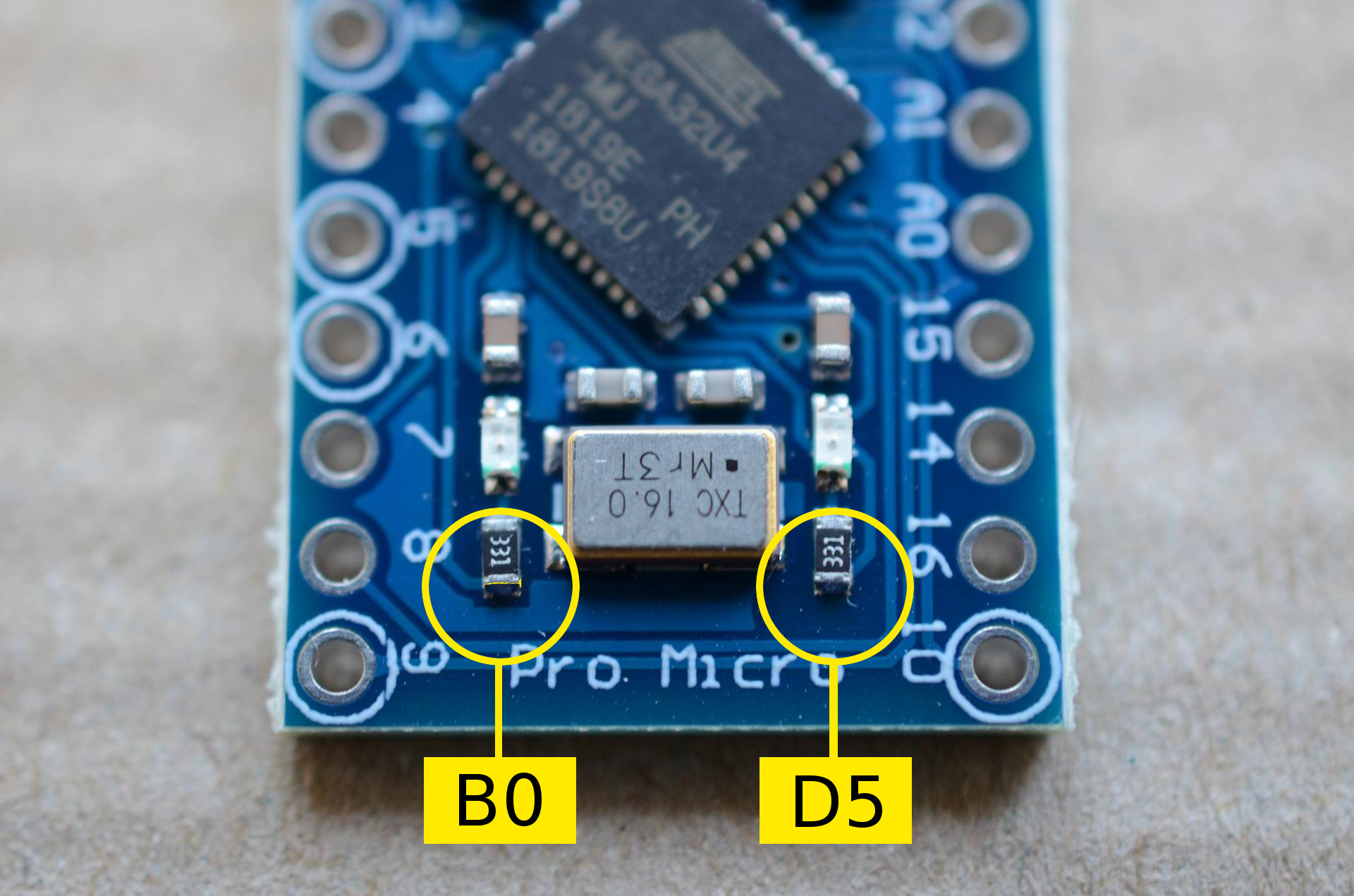 바로 LED 핀. 저기에 붙은 다이오드를 인두기로 녹여 떼주면 키보드 매트릭스용 핀으로 쓸 수 있다.