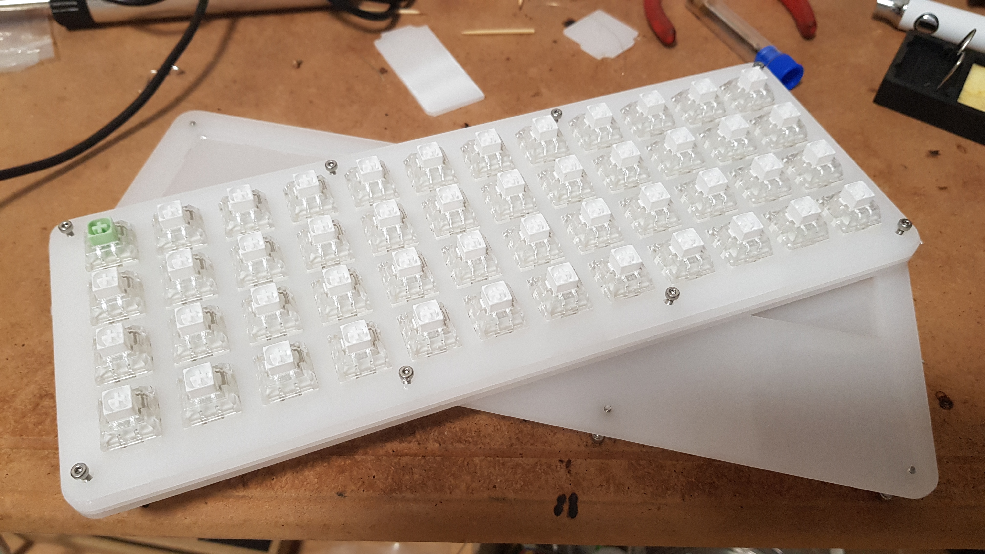 아크릴 구조물이 스위치를 감싸는 구조물에 빈공간이 거의없게 만들었는데