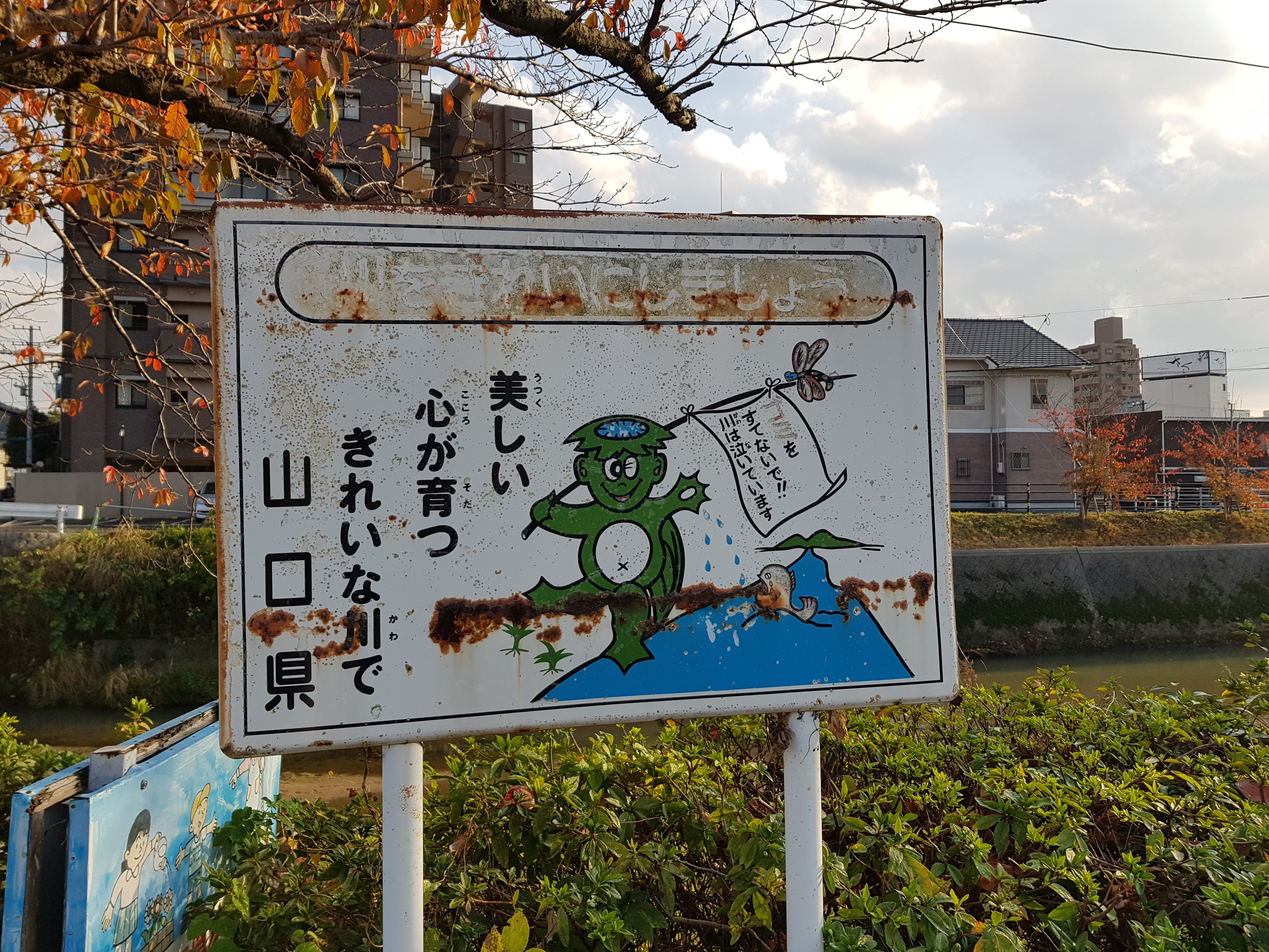 멸종 위기종인 갓파를 보호하자는 낡은 표지판 (구라임)