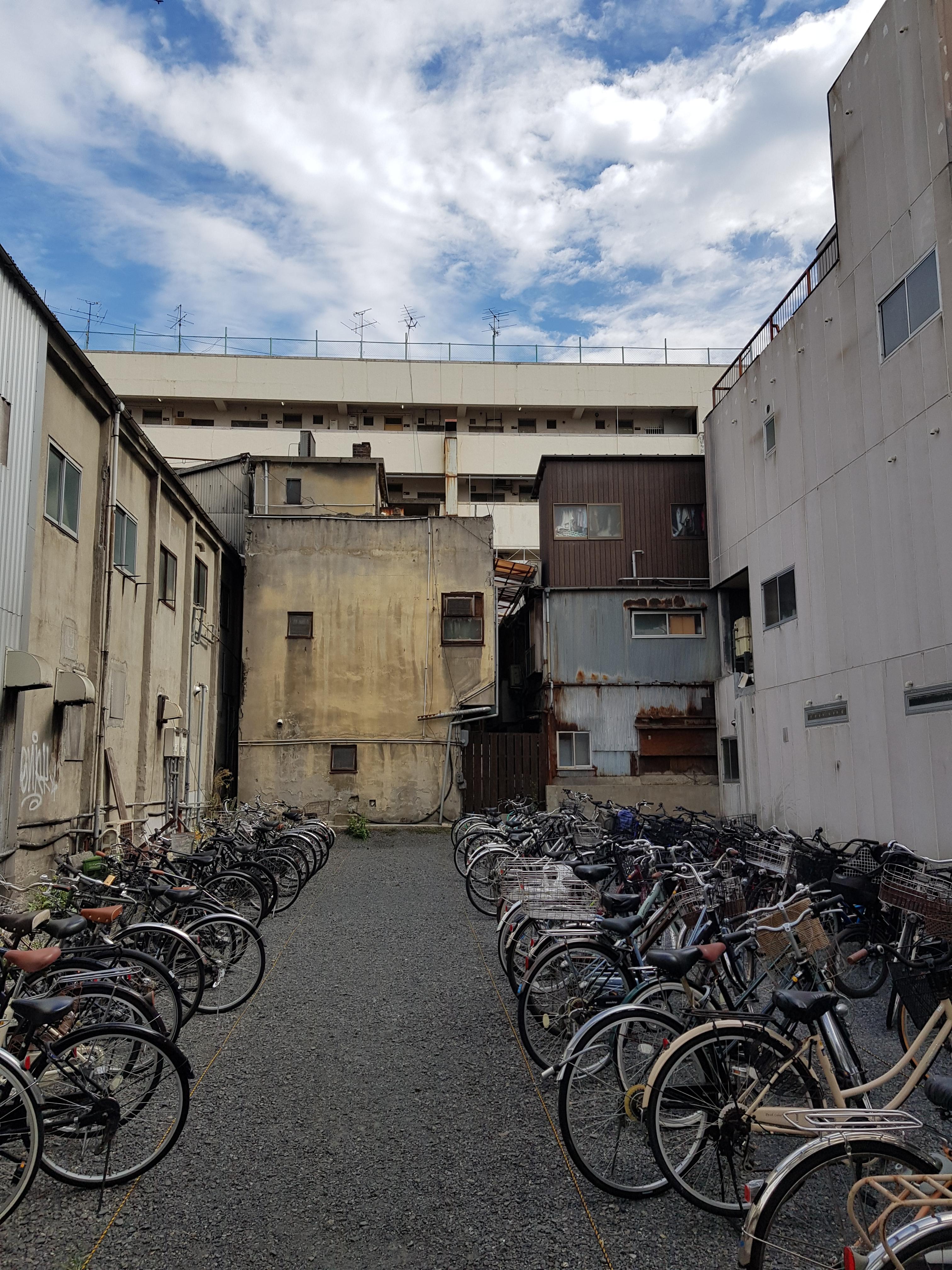 폐건물 뒷편의 자전거 보관소
