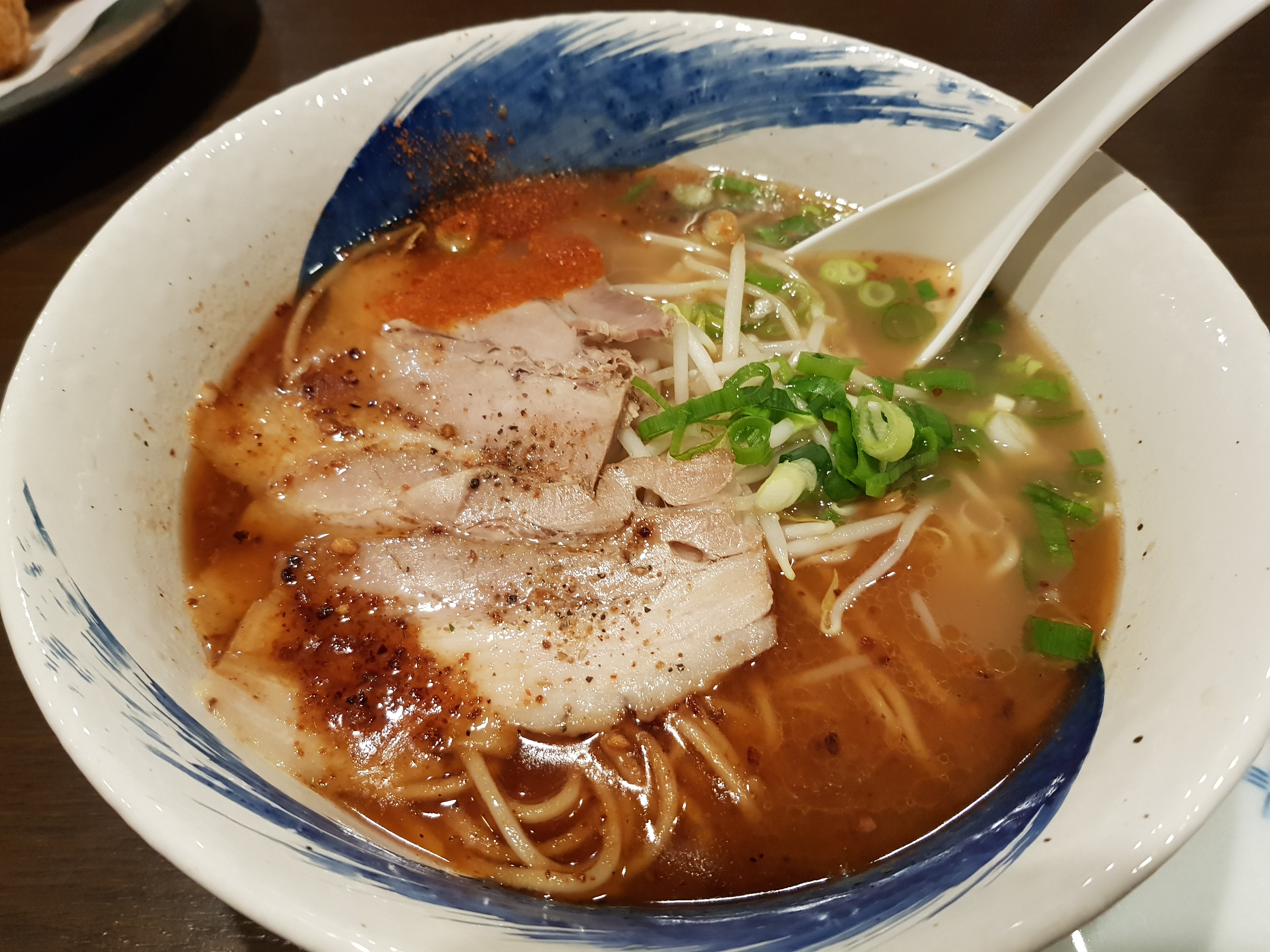 의외로 보기 드물었던 규코츠 라멘. 돈코츠가 돼지 사골이라면 규코츠는 소 사골 국물이다. 맛은 예상 가능한 사골국물인데 일본 특유의 감칠맛이 진하게 들어가면서 사리곰탕 국물같은 느낌이 된다.